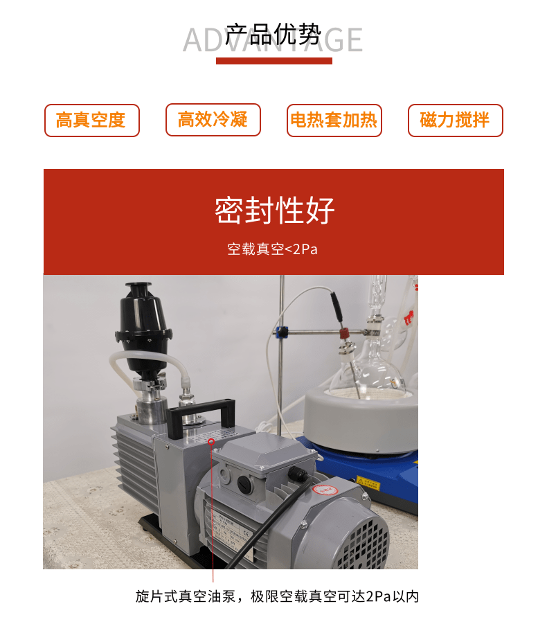 本款短程蒸餾,冷凝器與加熱面距離很近,能把氣相物質(zhì)瞬間液化,因此能維持設(shè)備內(nèi)部的高真空,特別適用于常壓下高沸點,用普通分離方法難以分離的物料。