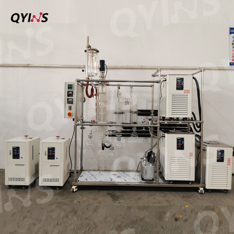 玻璃分子蒸餾 QYMD-60D(有效蒸發(fā)面積0.06㎡,外置兩根冷凝器,配套兩臺(tái)低溫泵) 應(yīng)用領(lǐng)域 : 日用化工及化妝品 醫(yī)藥 添加劑 塑料 農(nóng)藥及表面活性劑-礦物油 工業(yè)大麻(CBD) 加工物料 :合成及天然維生素(維生素A、 維生素E、 B胡蘿卜南)提取純化CBD。