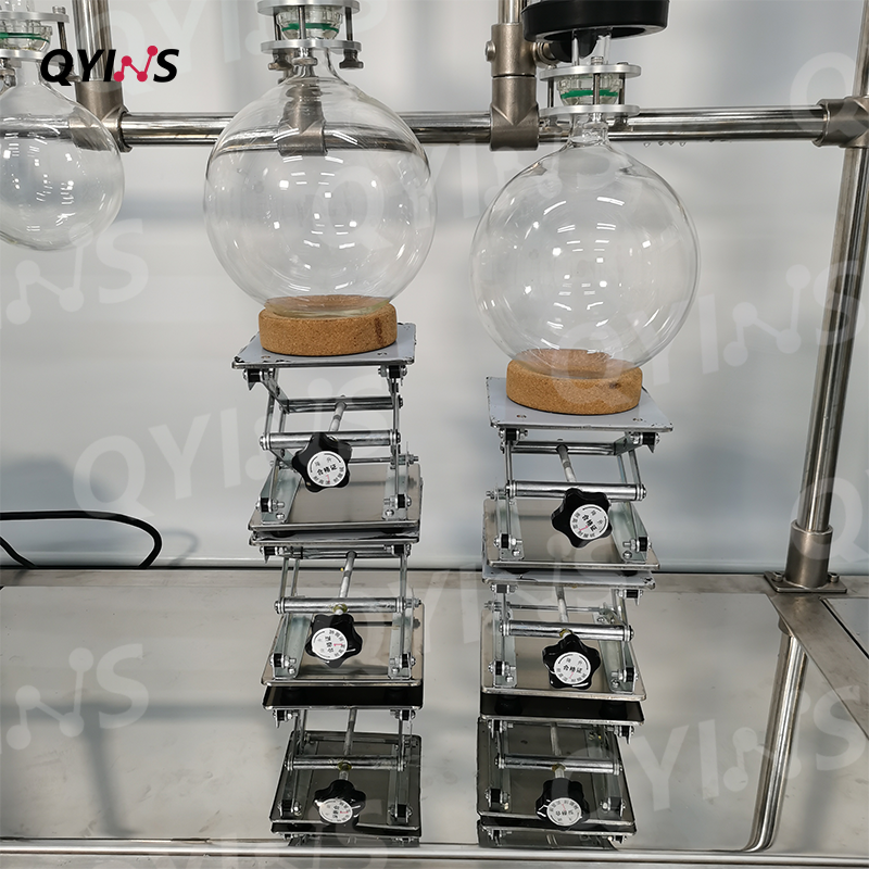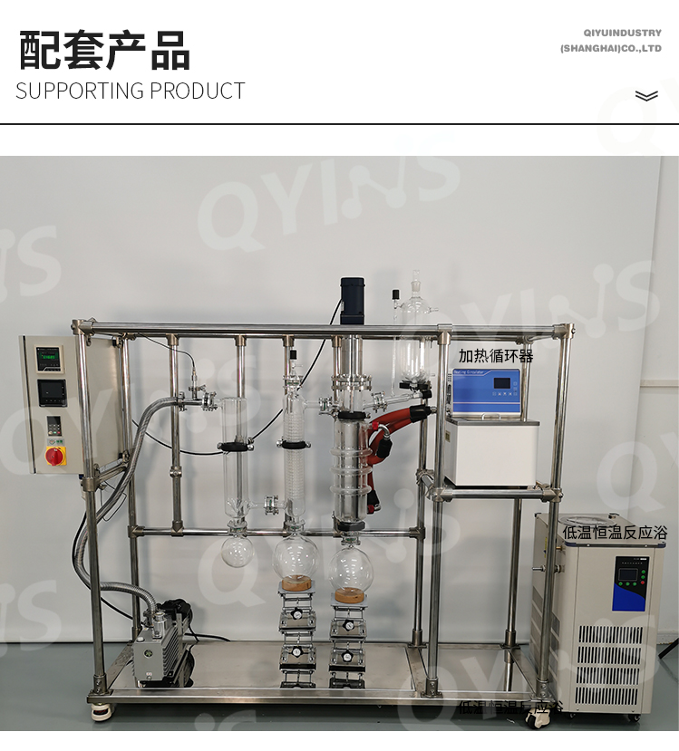1.單層玻璃進(jìn)料罐,高硼硅玻璃材質(zhì)儲(chǔ)存物料,使物料能夠以相對(duì)穩(wěn)定和均勻的方式進(jìn)入分子蒸餾系統(tǒng)