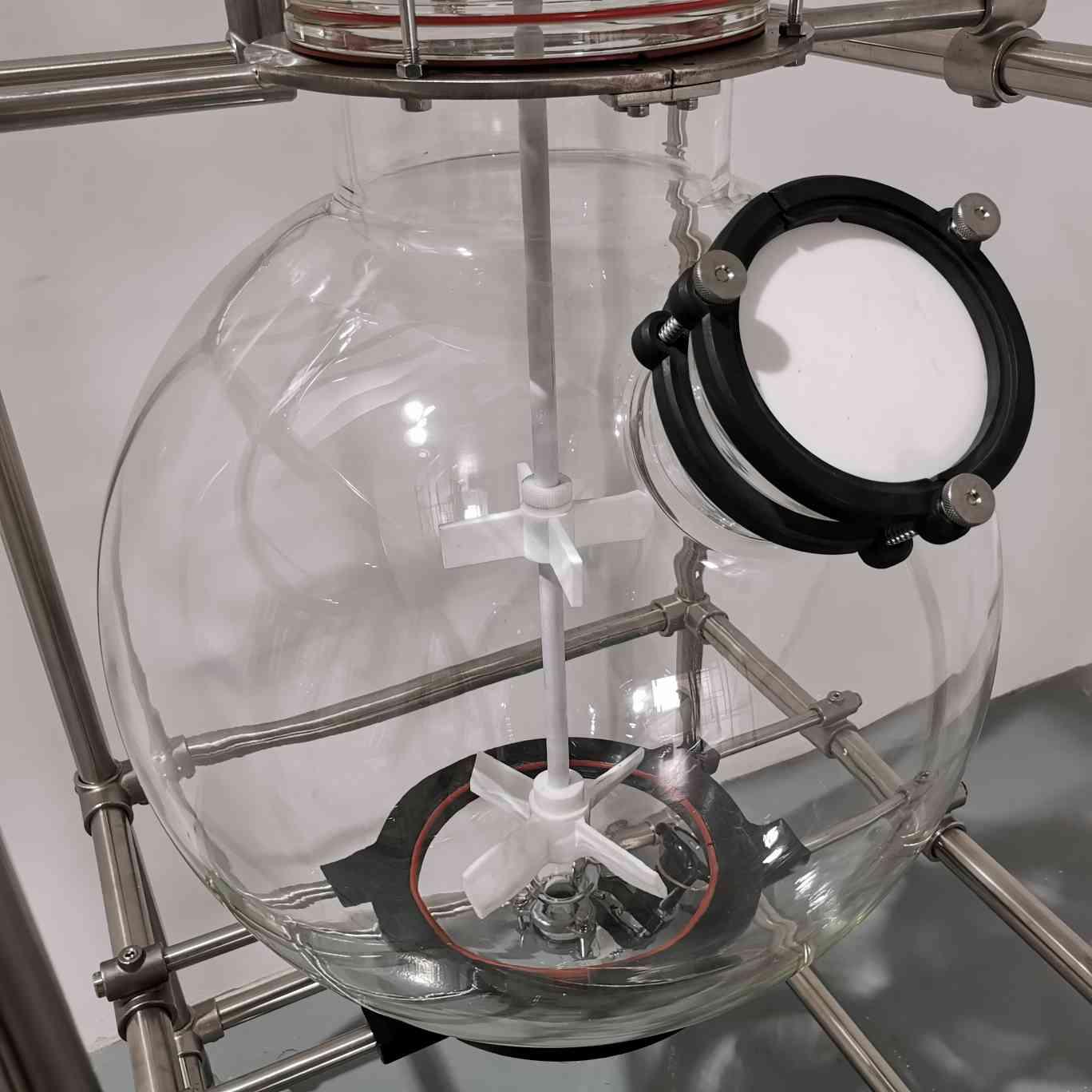 高硼硅球形玻璃釜體,加大固體投料口(直徑125mm),便于操作;清透潔亮,反應(yīng)全程清晰可見,便于實時掌控(容量可定制)。