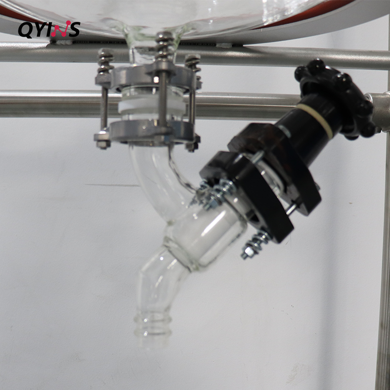2.釜蓋及連接處全部采用高真空閥門,無需涂抹真空脂;每一個球口里都有1個包四氟密封圈,保證整機高密封性。